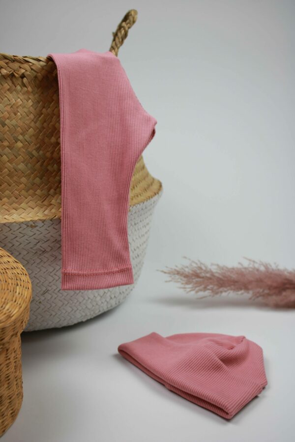 Die gerippte Beanie aus elastischer Biobaumwolle ist doppellagig angefertigt.