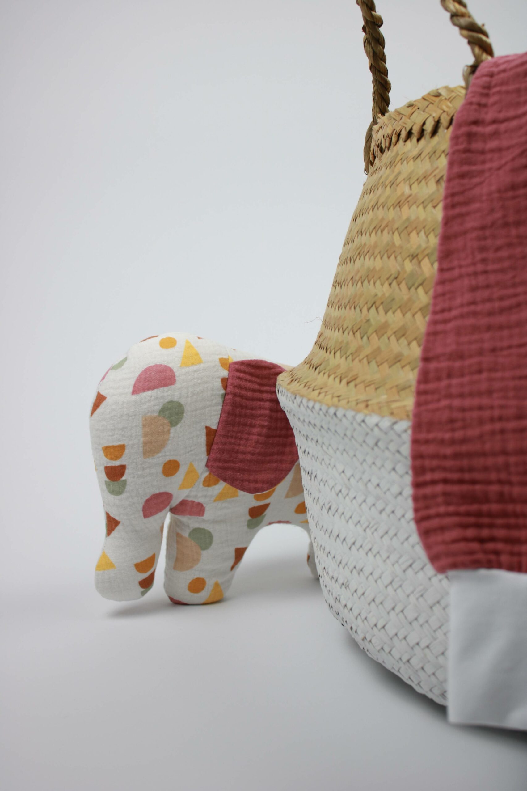 Schmuseelefant aus Baumwoll-Musselin in Bioqualität, gefüllt mit weicher Maiswatte (nach DIN EN 71-3 spielzeugtauglich).
