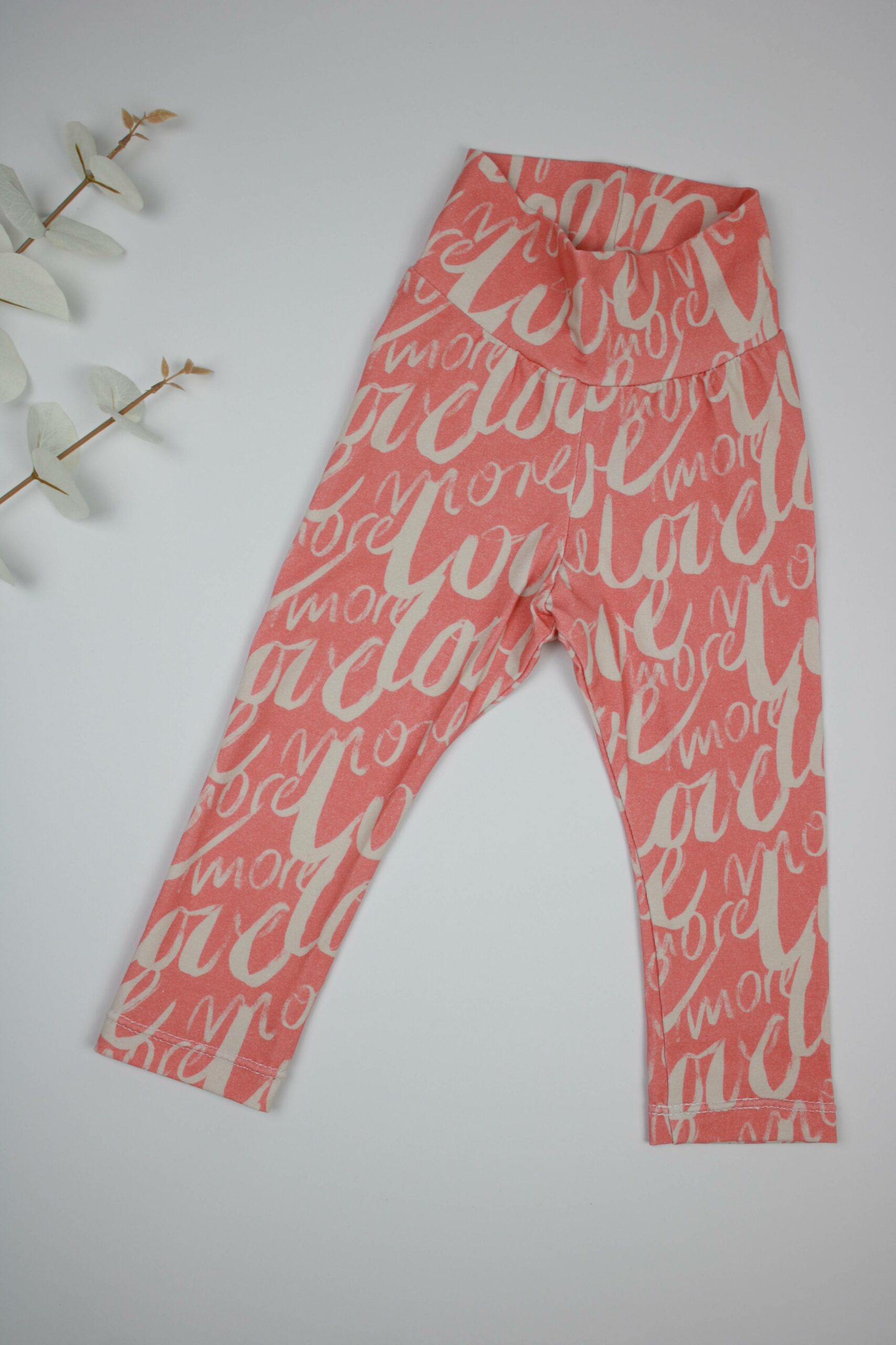 Die „Love Leggings“ besteht aus einem elastischen Baumwollstoff in Bioqualität. Das breite, hoch geschnittene Bündchen sorgt für einen angenehmen Sitz. Wenn gewünscht, kann der dehnbare Bauchbund auch einmal umgeschlagen werden. Die Leggings ist hinten so konstruiert, dass auch ein kleiner Windelpo wunderbar eingepackt ist und die Hose nicht rutscht.