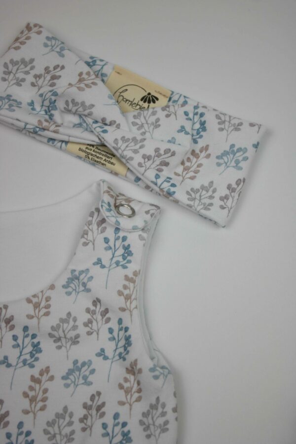 Dieses süße Set besteht aus einem Newborn-Body aus Biobaumwolle und einem dazu passenden Twist-Stirnband. Der Body ist mit praktischen Druckknöpfen an den Trägern und im Wickelbereich ausgestattet. Erhältlich ist das Set in einer großzügigen Größe 50/56 und somit geeignet für die Allerkleinsten. Perfekt an warmen Sommertagen, als Geschenk zur Geburt oder für die ersten süßen Bilder vom Neugeborenen. Anfangs sitzt der Body noch schön locker, was auch zuckersüß aussieht. Mit wenigen Wochen passt er dem kleinen Schatz dann perfekt.