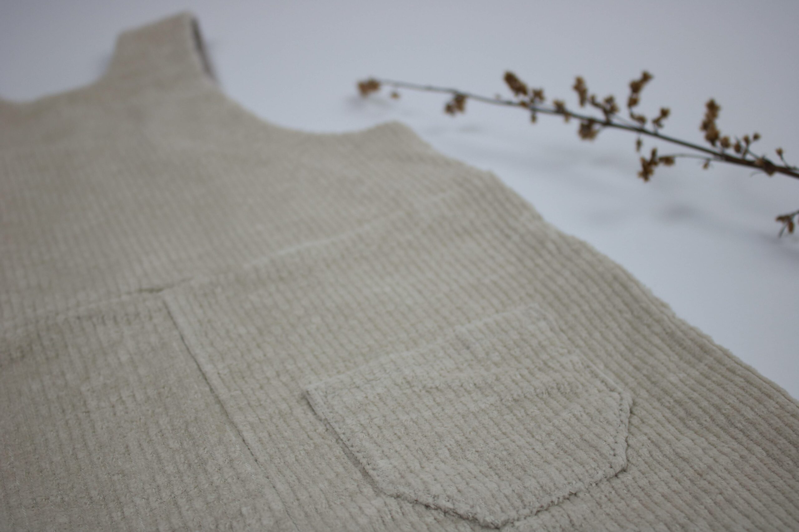 Die „Sand Latzhose“ aus reiner Biobaumwolle hat schöne Olivenholz-Knöpfen und eine kleine Gesäßtasche. Die Cord-Latzhose ist in Doppelgrößen erhältlich und der entsprechenden Größer anpassbar. Dank der zwei Knöpfe an jedem Träger können diese verkürzt oder in voller Länge getragen werden – dann sind insgesamt alle vier Knöpfe sichtbar. Die Beinlänge wird durch Umschlagen angepasst.