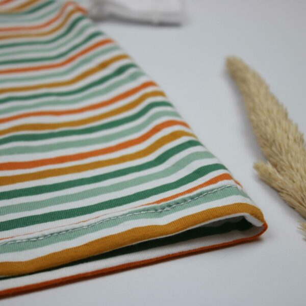 Dieser farbenfrohe Strampler aus Biobaumwolle ist weit geschnitten. Er hat praktische Druckknöpfen an den Trägern und ist in komfortablen Doppelgrößen erhältlich. Für die jeweils kleinere Größe können die langen Beinbündchen einfach umgeschlagen und somit verkürzt werden. Später wird dann die komplette Länge genutzt. So habt ihr an dem Strampler möglichst lange Freude.