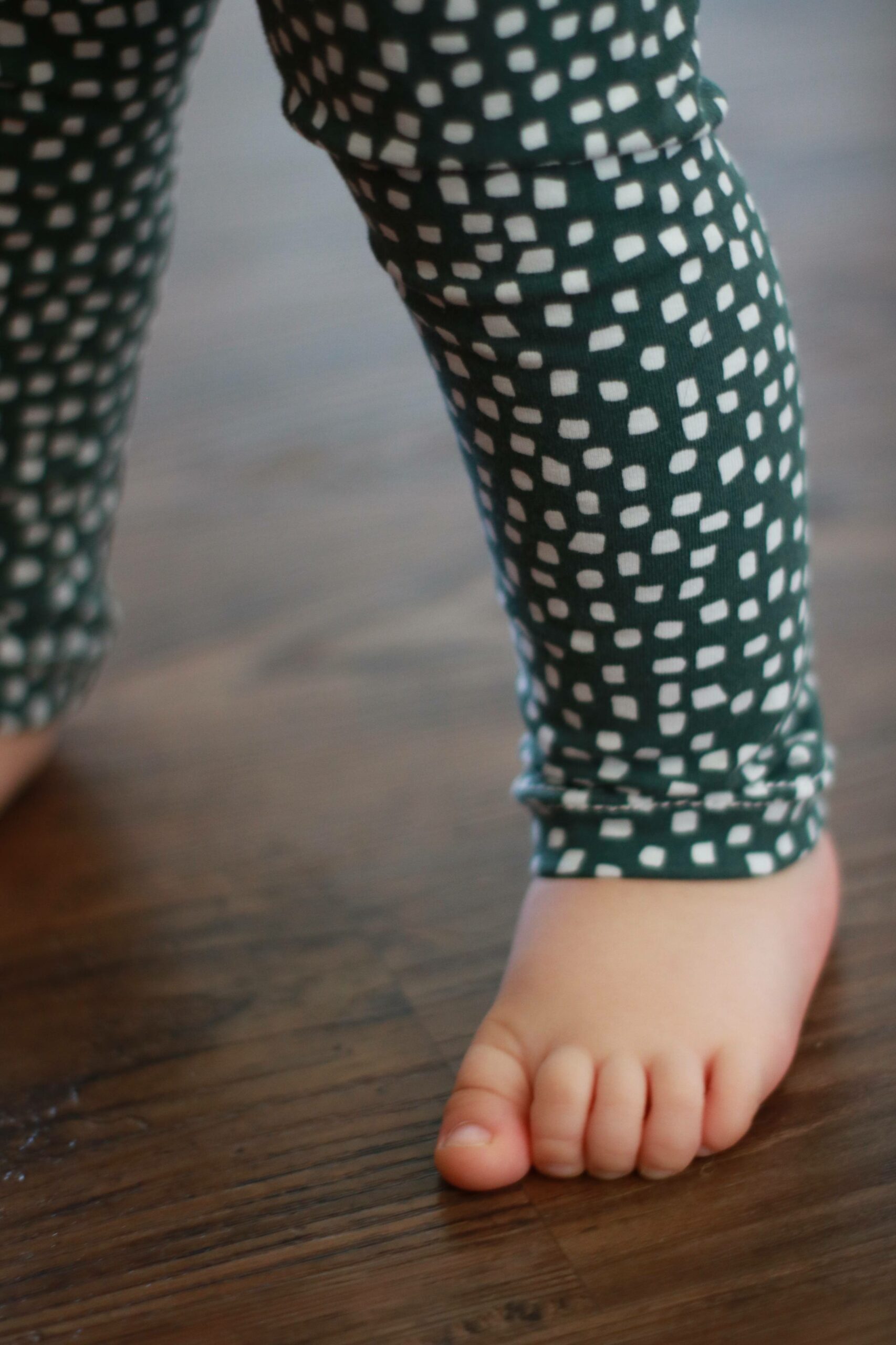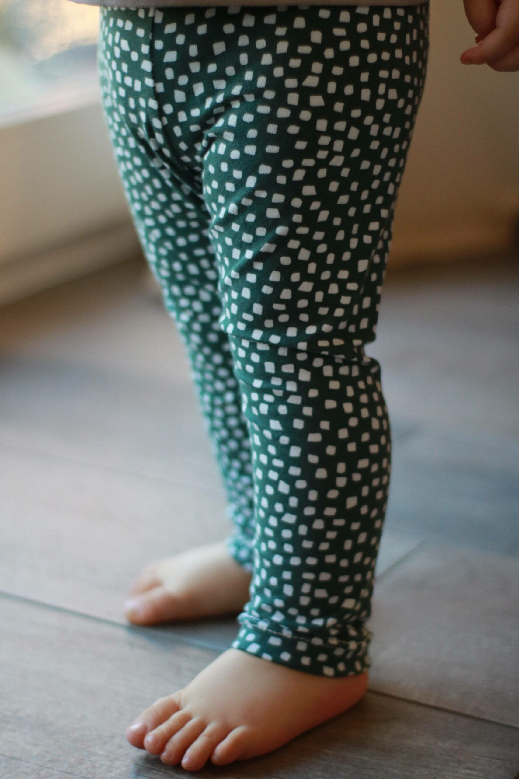 Die bequeme „Tupfen Leggings“ besteht aus einem elastischen Baumwollstoff in Bioqualität. Das breite, hoch geschnittene Bündchen sorgt für einen angenehmen Sitz. Wenn gewünscht, kann der dehnbare Bauchbund auch einmal umgeschlagen werden. Die Leggings ist hinten so konstruiert, dass auch ein kleiner Windelpo wunderbar eingepackt ist und die Hose nicht rutscht.